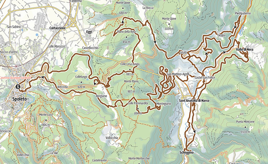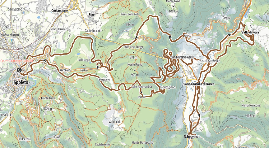 75 km per 2200 metri (dsl+) per chi ama la fatica e si sente pronto per misurarsi con un percorso off-road, integralmente su strade bianche e single track, con passaggio a Grotti, Vallo di Nera, Castel San Felice, Sant’Anatolia di Narco e Scheggino. Percorrerete la Vecchia Ferrovia, tra viadotti, gallerie e panorami indimenticabili, costeggerete il fiume Nera che da il nome a tutta la valle